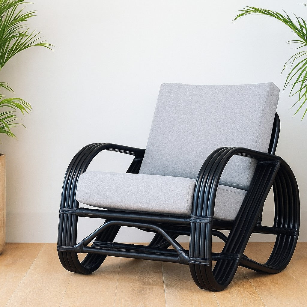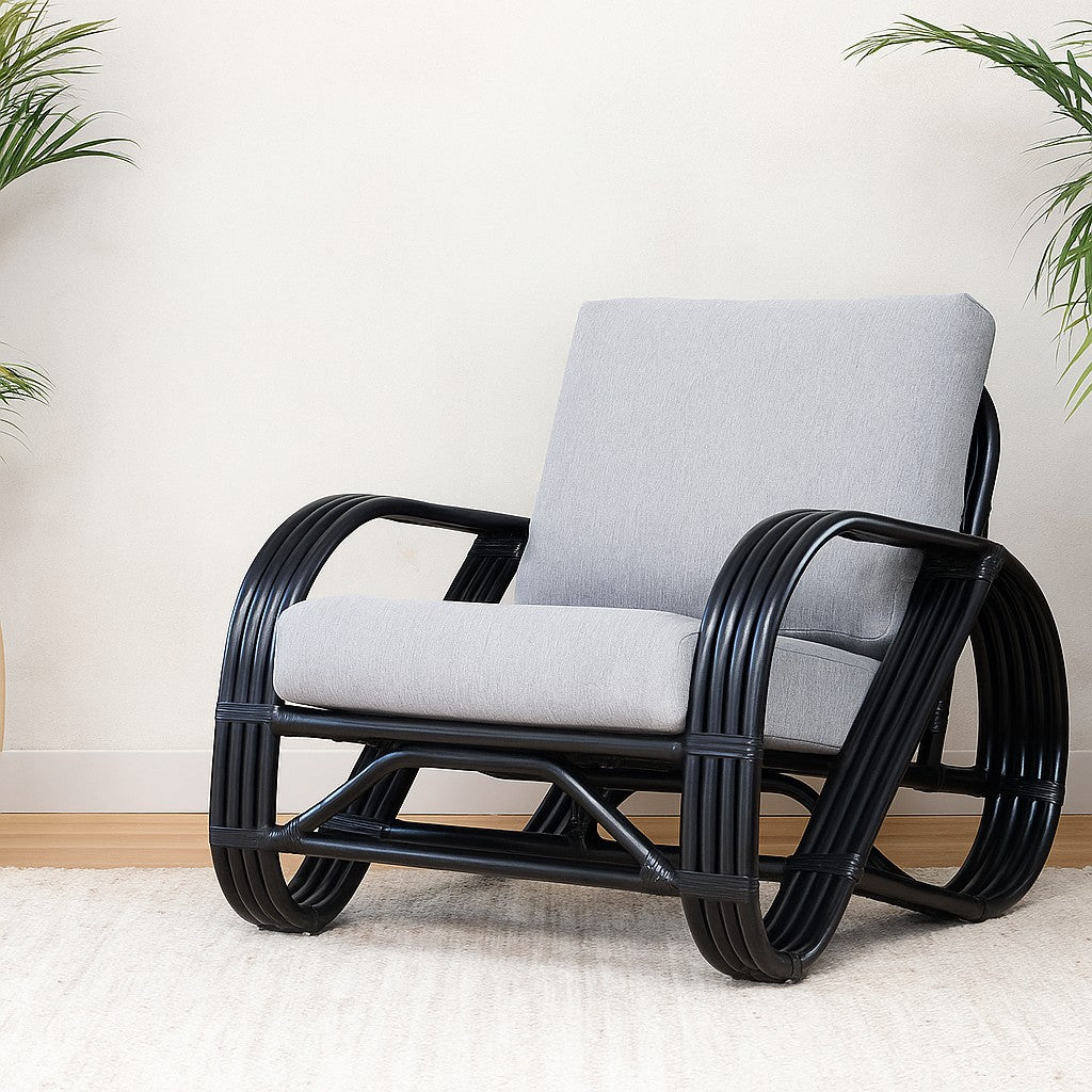 IRA Black Finish Armchair – 1 Piece | Handwoven Rattan with Cushions