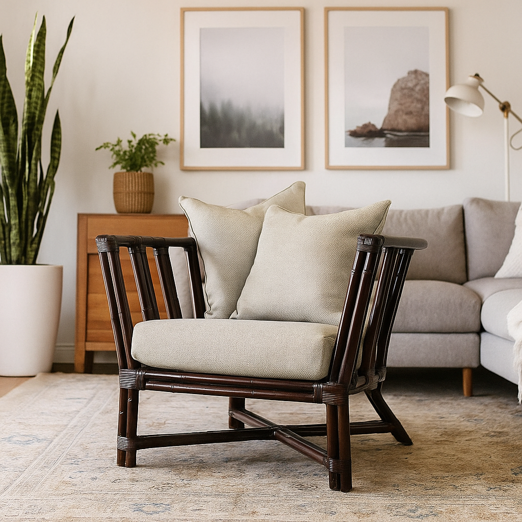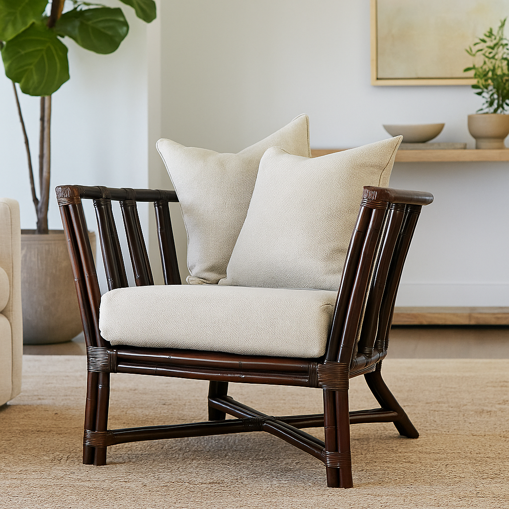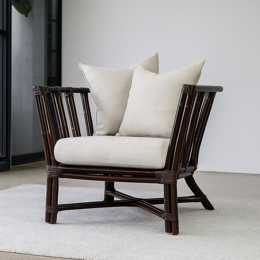IRA Brown Wash Armchair | Comfortable Rattan Chair with Cushion
