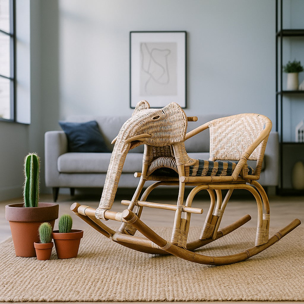 Bring fun and adventure to your little one’s playtime with the IRA Kid's Rocking Elephant – Natural. Handcrafted from ethically sourced natural rattan, this charming elephant rocker is designed to be both durable and delightful, making it the perfect gift for children.