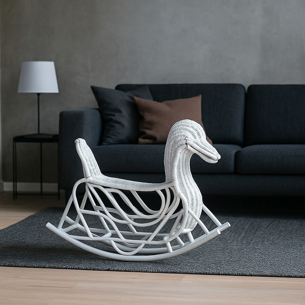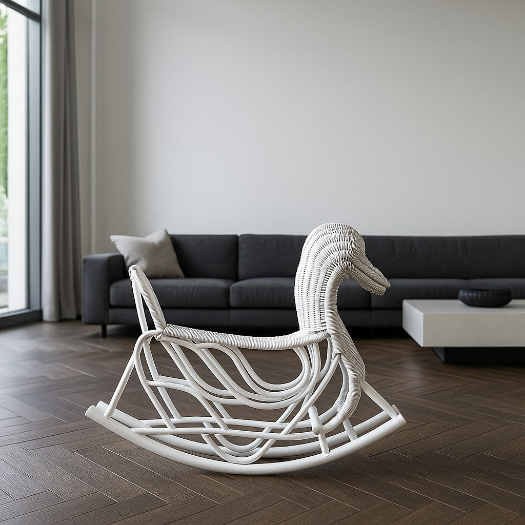 Bring joy and charm to your child’s playtime with the IRA Kid's Rocking Horse – White. Handcrafted from natural, ethically sourced rattan, this delightful Duck Horse Rocker is designed to be a keepsake toy that combines fun, safety, and timeless design. A perfect addition to your little one’s nursery or playroom, it also makes a thoughtful and unique gift.