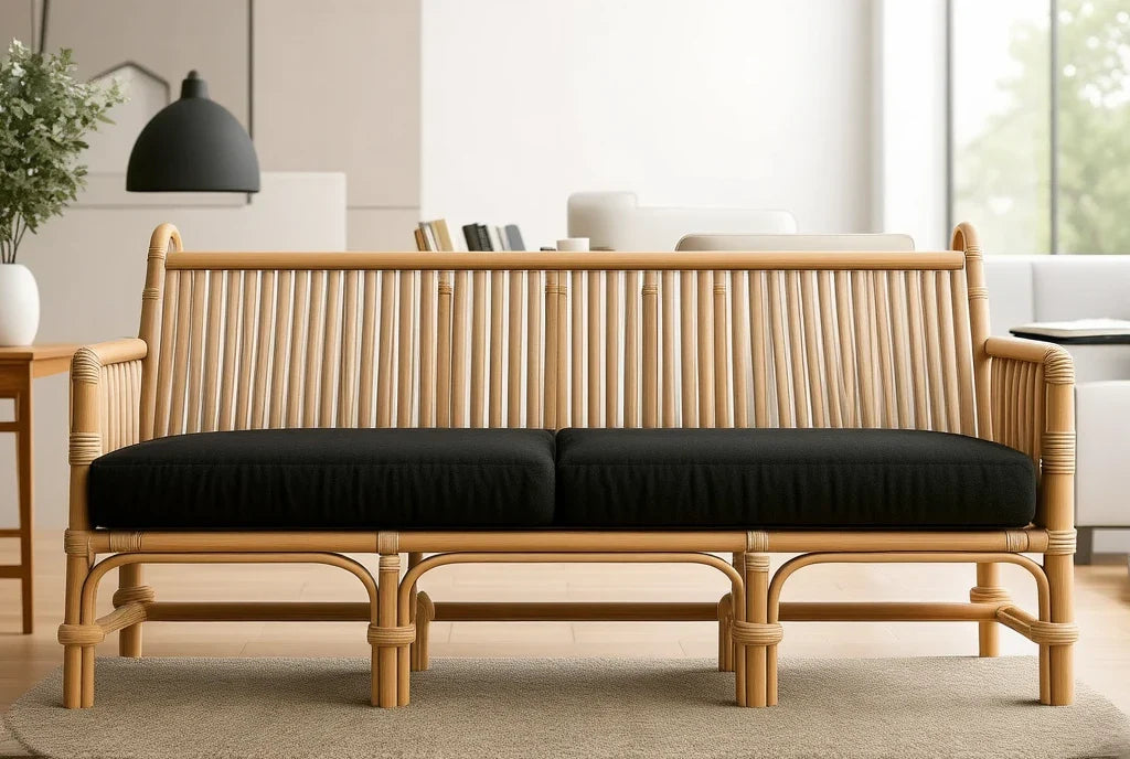 IRA Wicker 3-Seater Sofa – Natural, Handwoven Rattan with Cushions