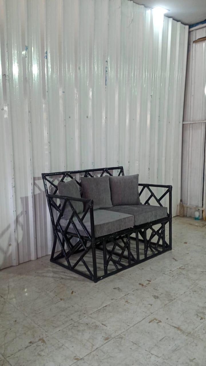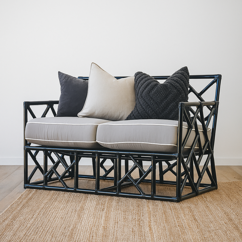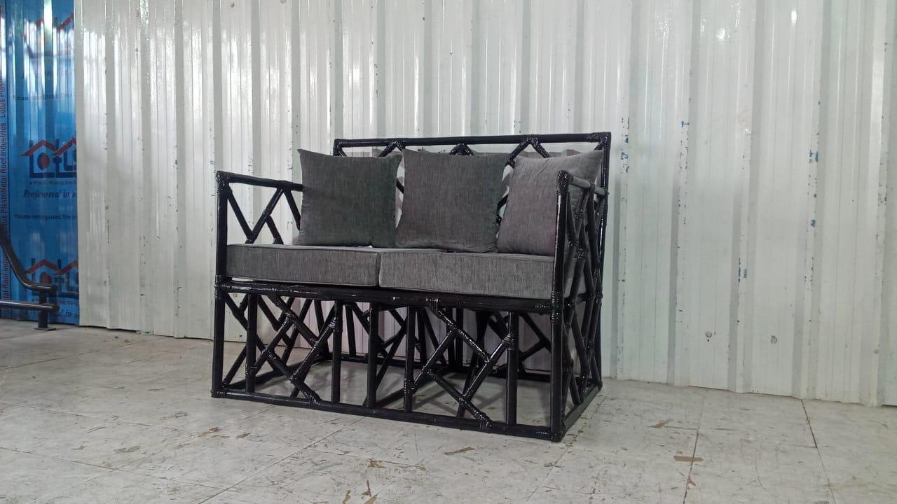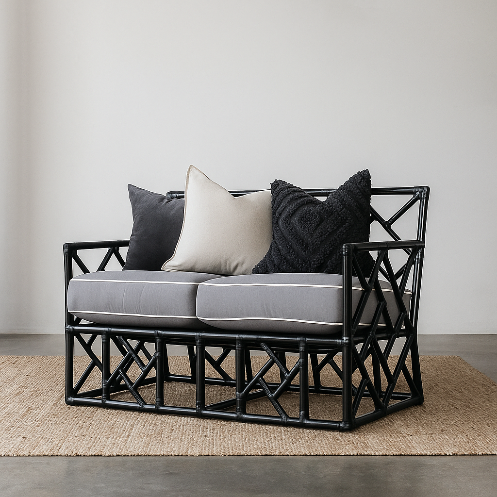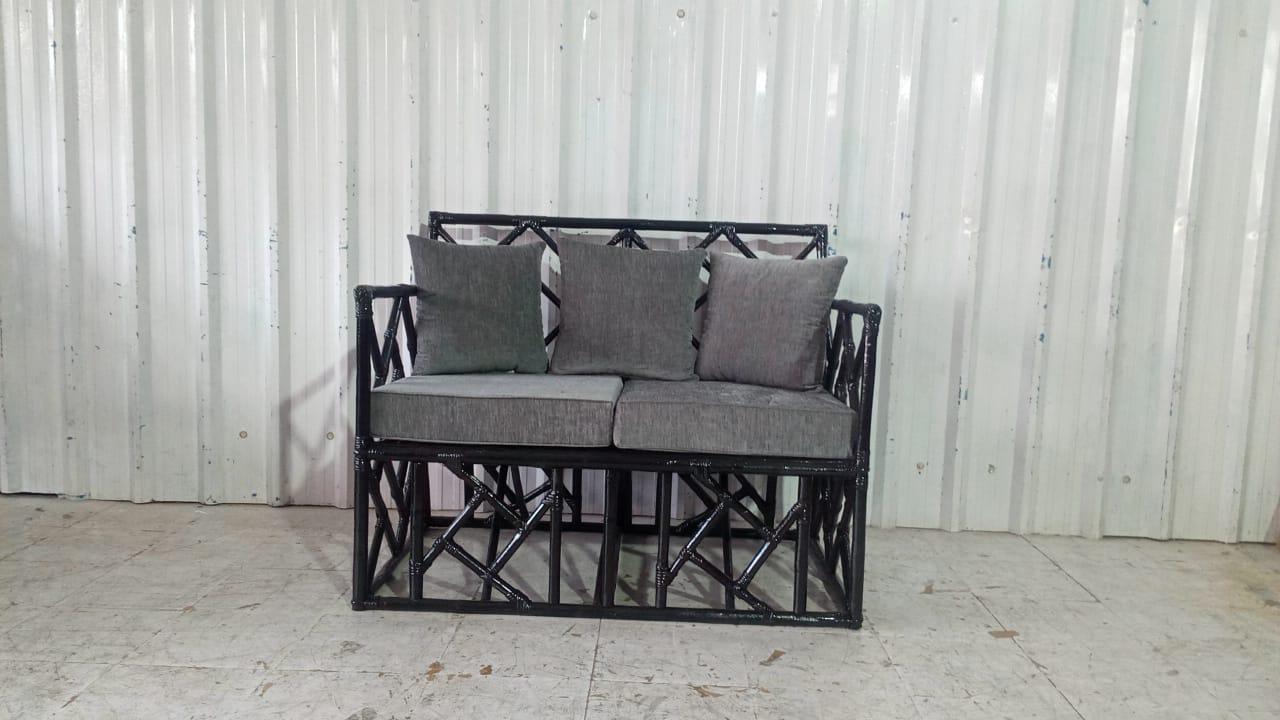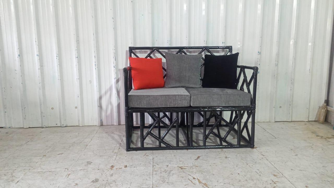 IRA 2-Seater Black Sofa Set Day Bed | Wooden Sofa for Living Room, Bedroom, Hotels & Resorts | Indoor & Outdoor Furniture | Durable Rattan Wicker Design