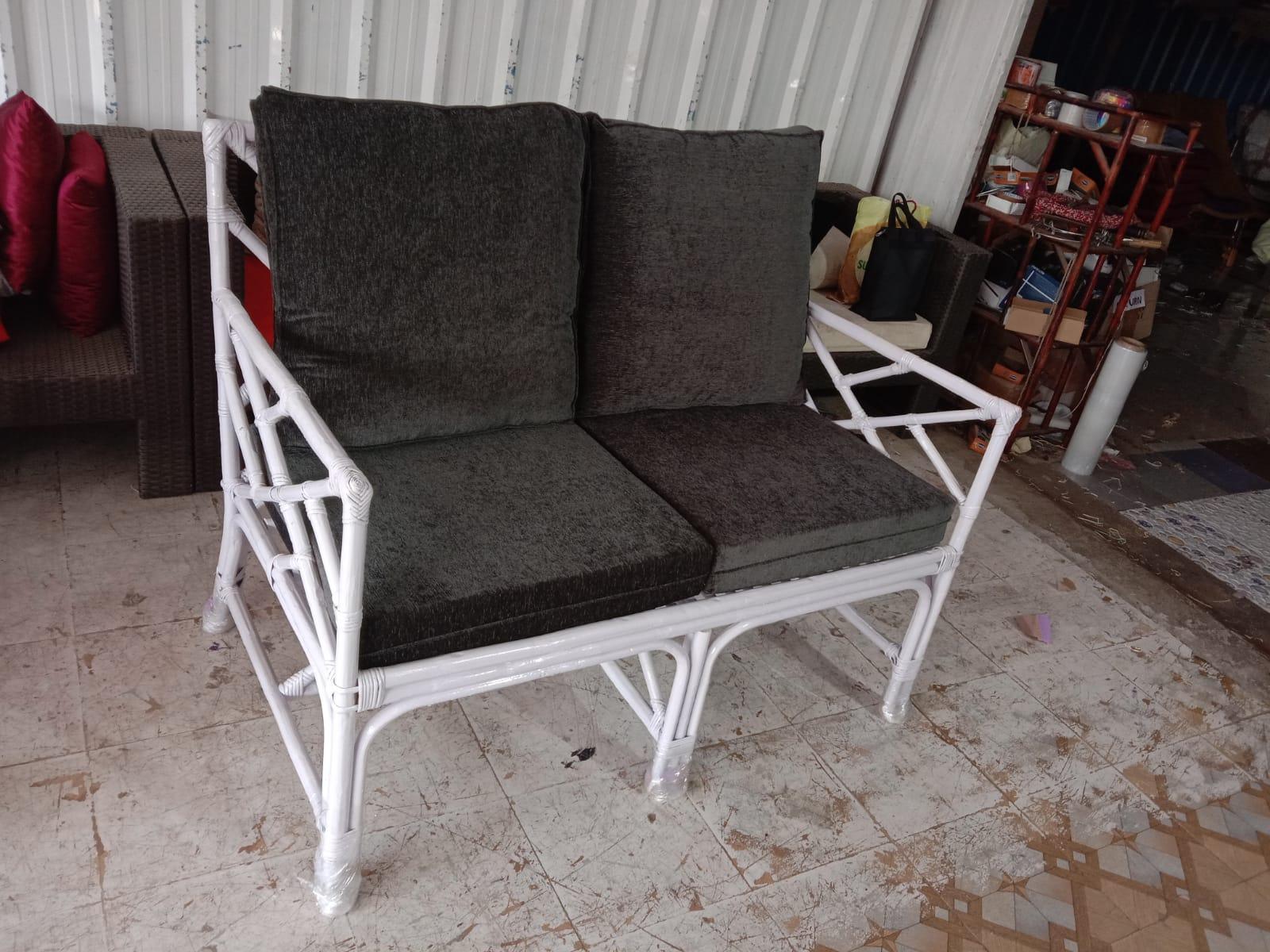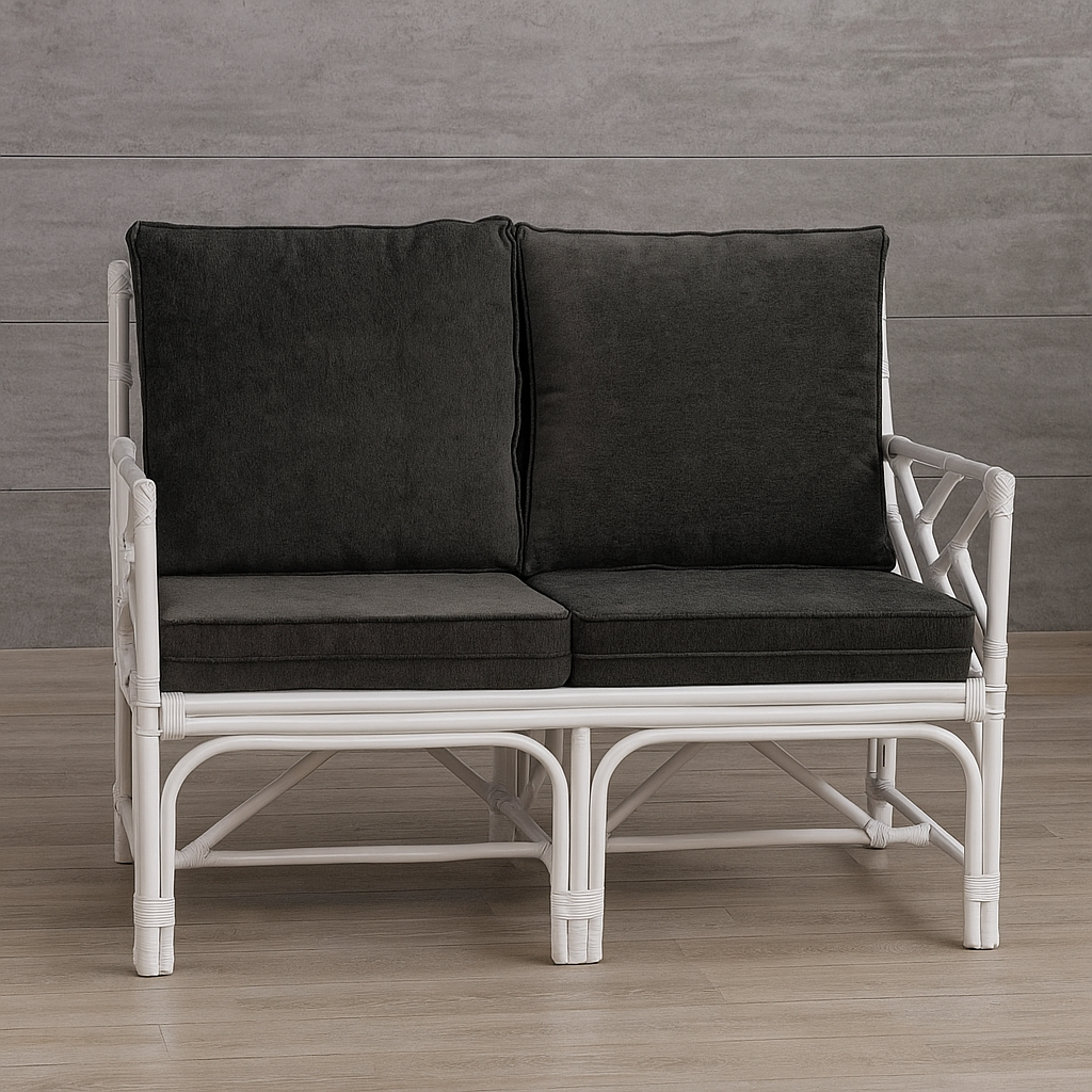 IRA 2 Seater White Retro Sofa – Handwoven Rattan with Wooden Frame