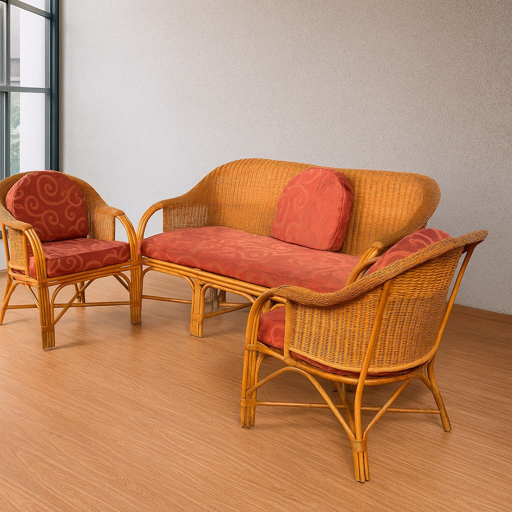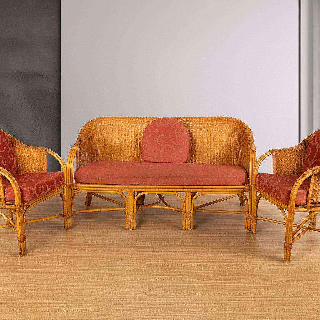IRA Cane 5-Seater Sofa Set with Cushions (3+1+1) and Center Table – Spacious & Comfortable Living Room Furniture
