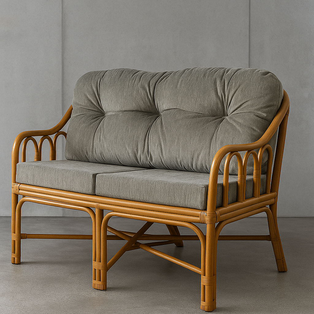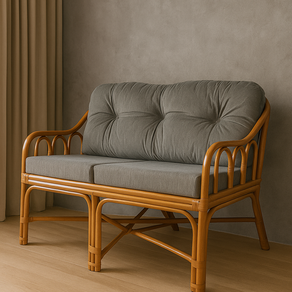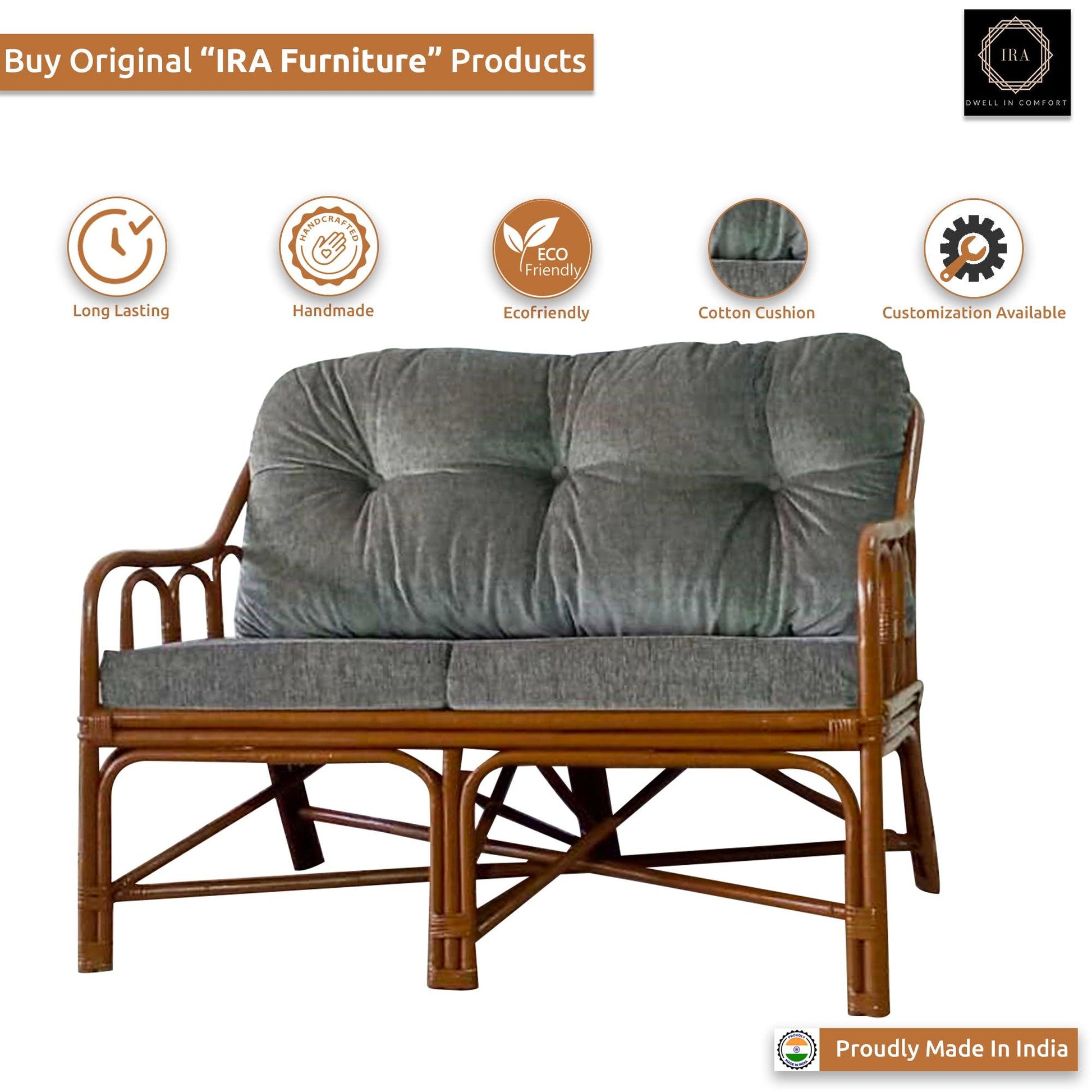IRA 2-Seater Simple Sofa Set - Dark Brown Wash, Handwoven Rattan, Comfortable Seating for Living Room, Garden, Balcony | Modern Design, Wooden Frame, Outdoor & Indoor Use