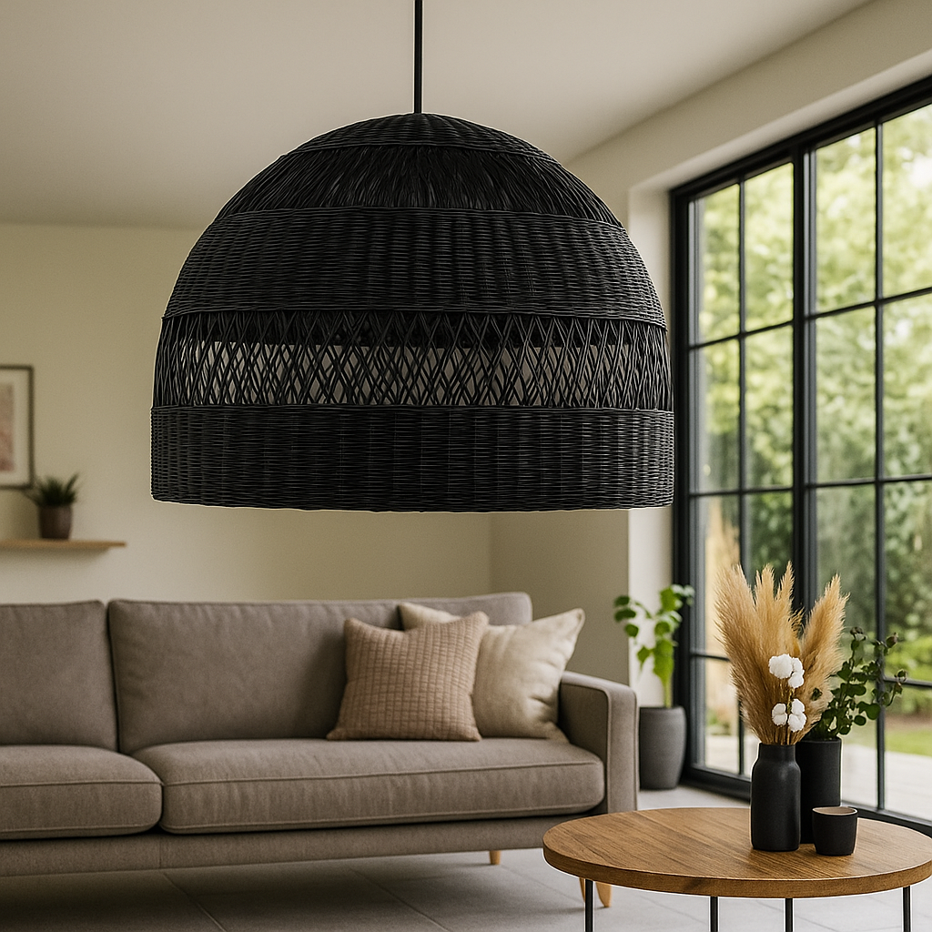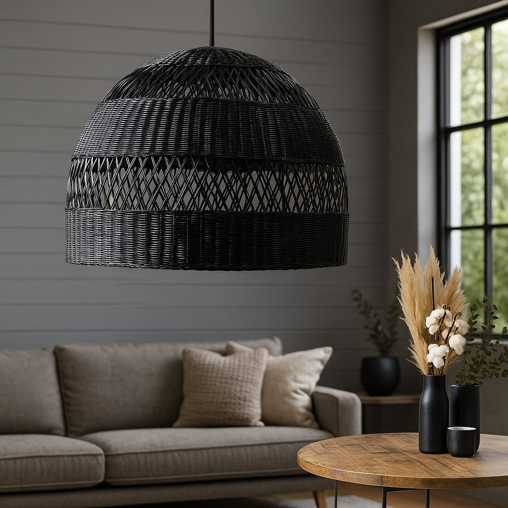 IRA Rattan Bell Pendant Light Shade – Large (Black)