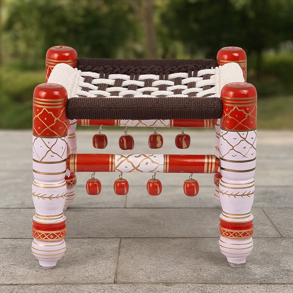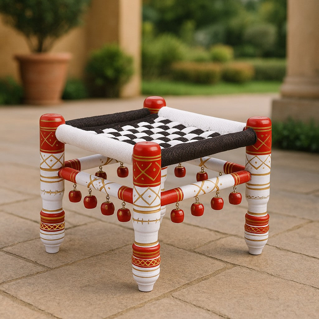 Hand-Painted Wooden Chowki Khatli Stool Bajot | Balcony, Living Room & Garden Seating | Rajasthani Design