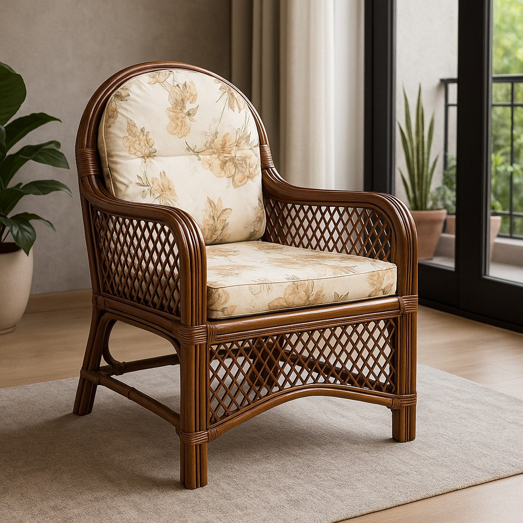 This handmade rattan chair is a versatile addition to any space. Its lightweight and sturdy construction make it suitable for both indoor seating and as a feature chair in smaller rooms. Designed for ultimate comfort, it will quickly become a favorite spot in your home. Whether you want to add to your cane furniture collection or start a new one, the IRA Bamboo Single Seater Sofa is the perfect choice for an eco-conscious, stylish seating solution.