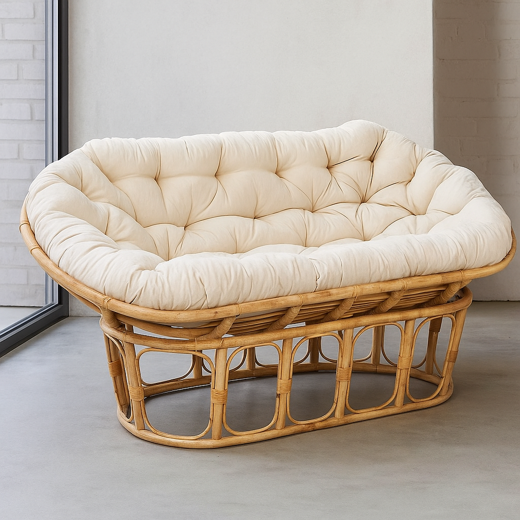 IRA 2-Seater Papasan Sofa - Folding Recliner, Cane Material, Comfortable Seating, Brown Color | Sofa, Daybed, or Bed for Bedroom, Garden, Balcony, Living Room, Patio