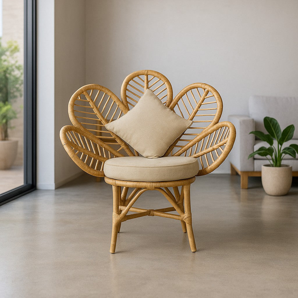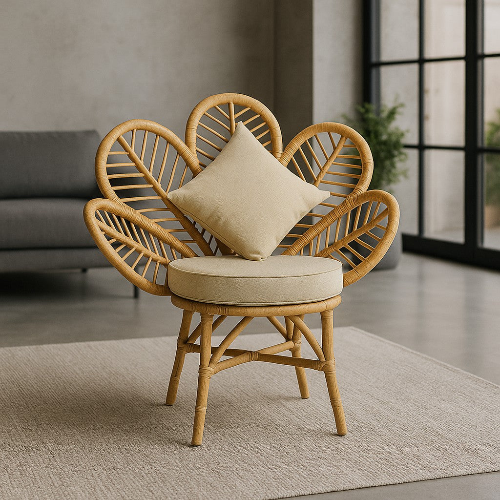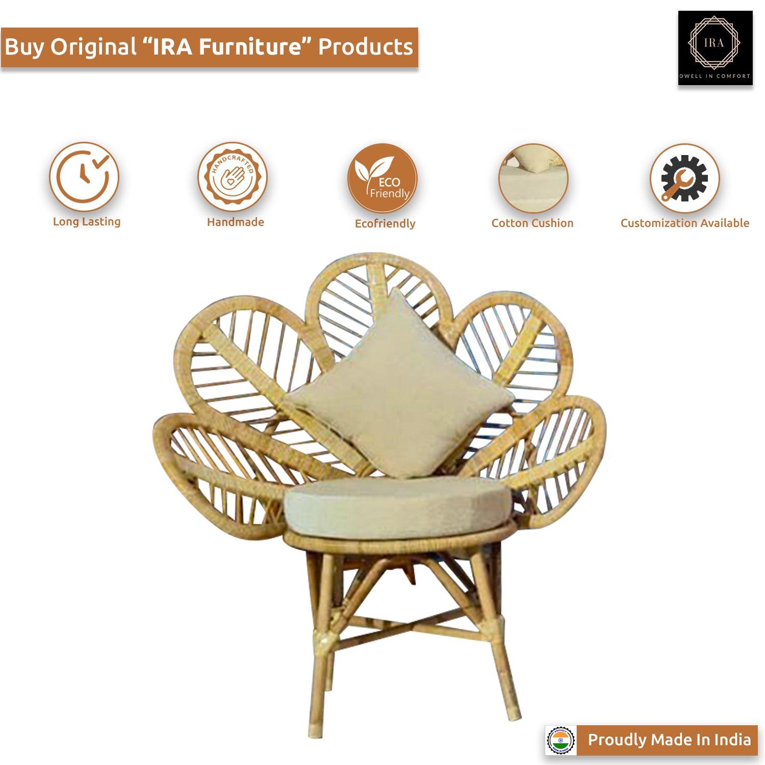 IRA Flower Vintage Rattan Chairs | Unique Handmade Cane Wooden Chairs for Living Room, Balcony & Home Decor | Boho Retro Accent Chairs