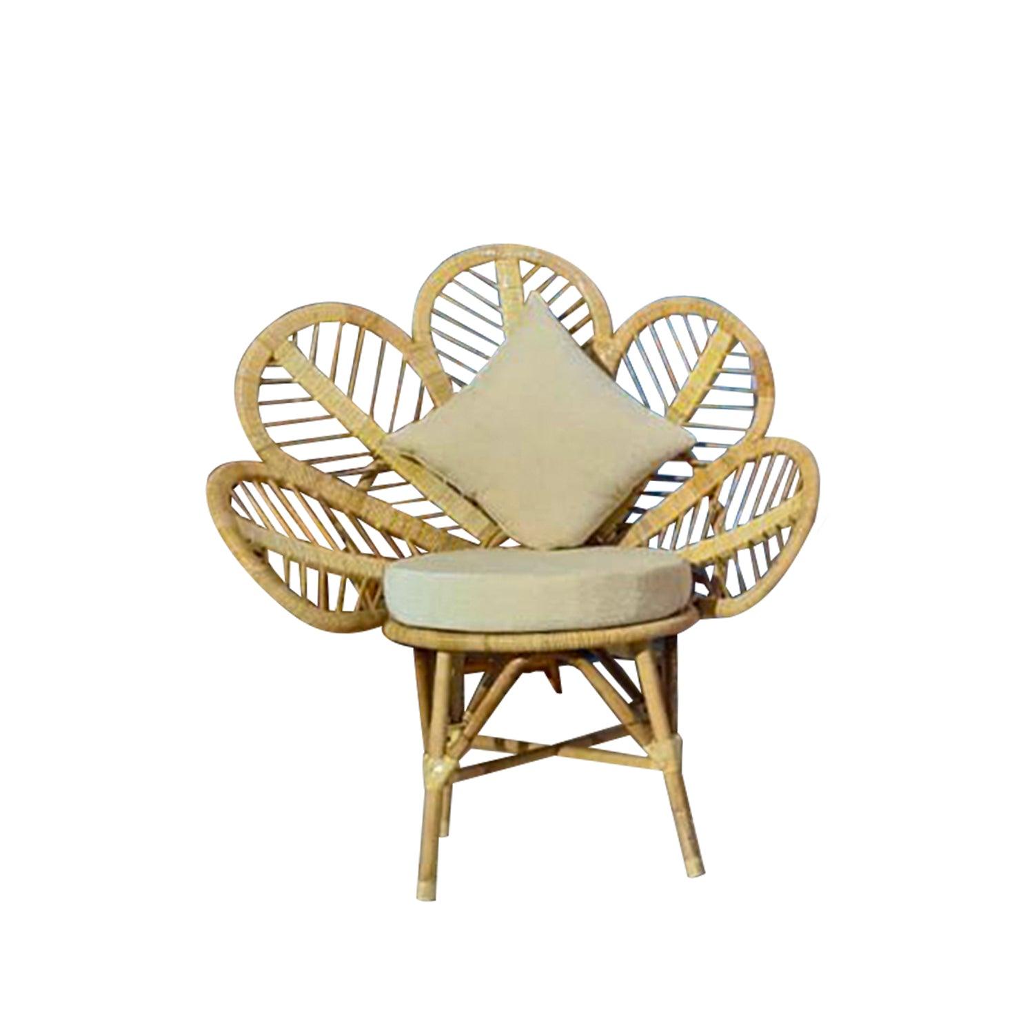 IRA Flower Vintage Rattan Chairs | Unique Handmade Cane Wooden Chairs for Living Room, Balcony & Home Decor | Boho Retro Accent Chairs