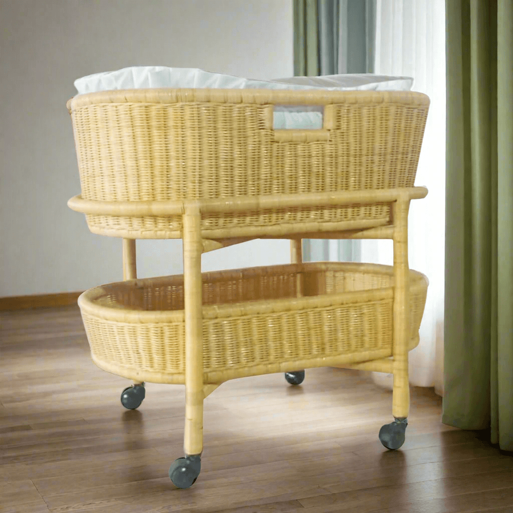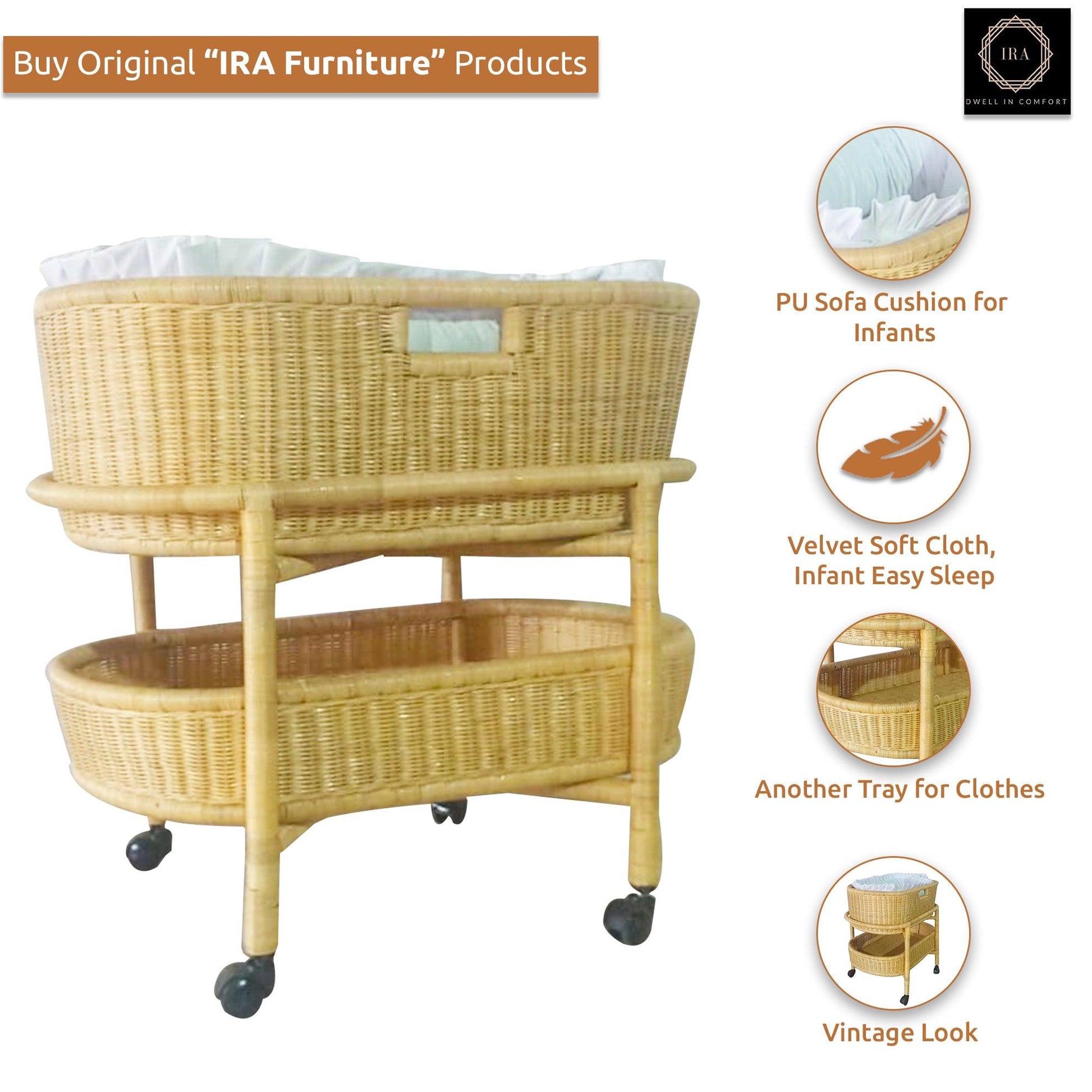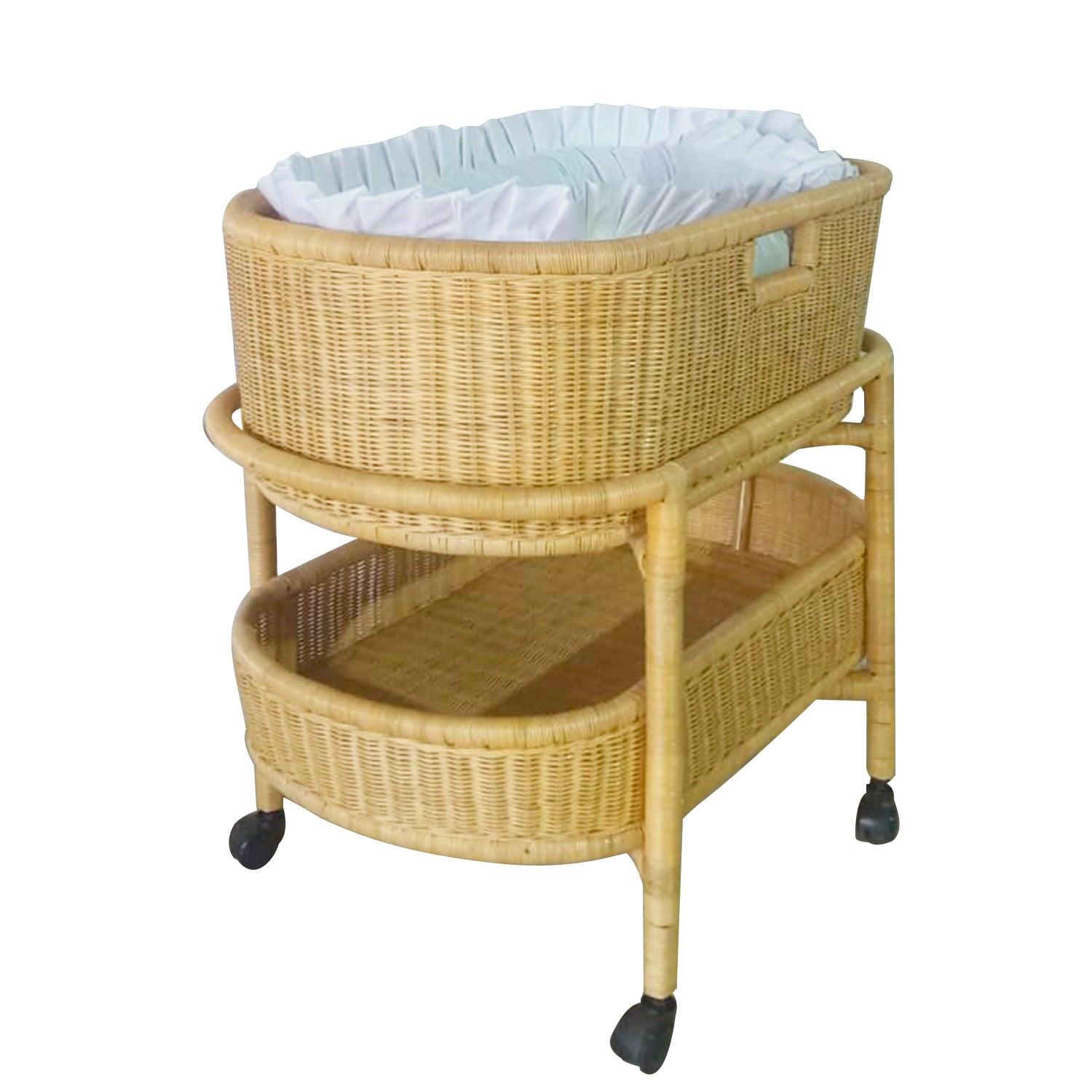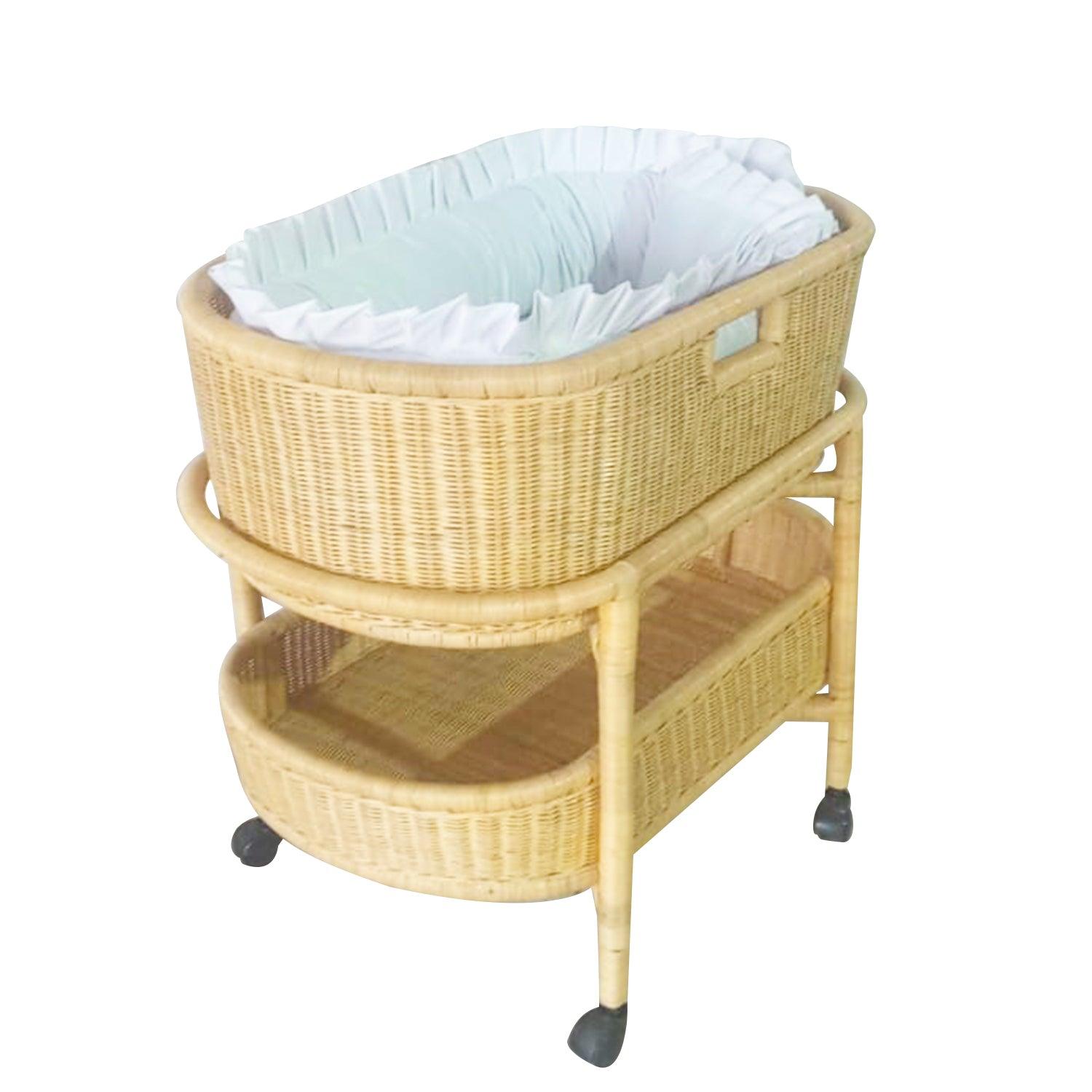 IRA Kids Brannan Bassinet | Baby Wicker Cradle with Removable Basket & Cotton Cushions | Handmade Infant Bed & Baby Shower Gift