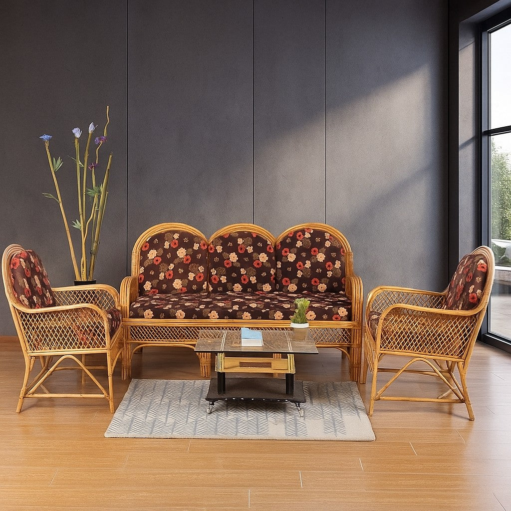 IRA Natural Rattan Cane 3 Seater Sofa Set with 2 Single Seater Chairs & Cushions (Brown)
