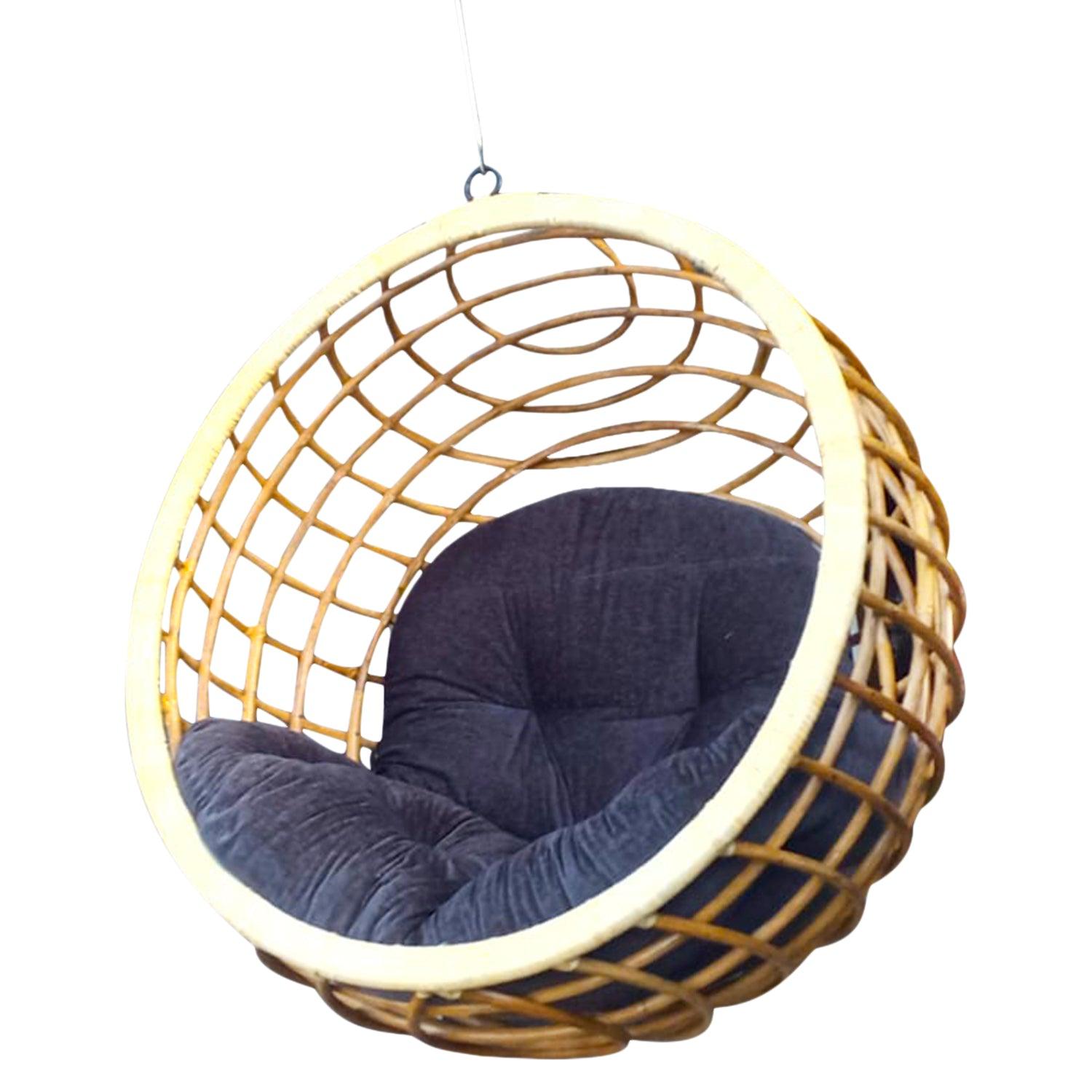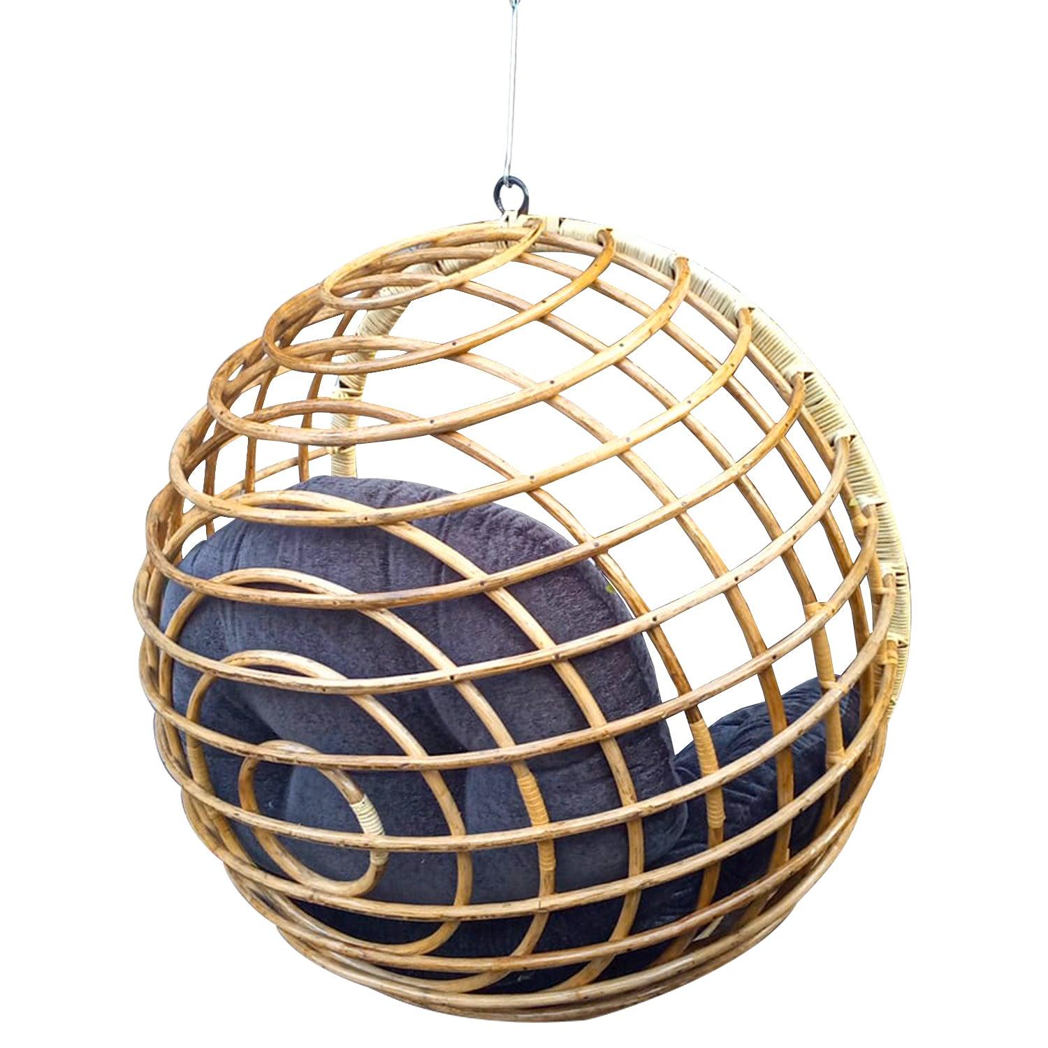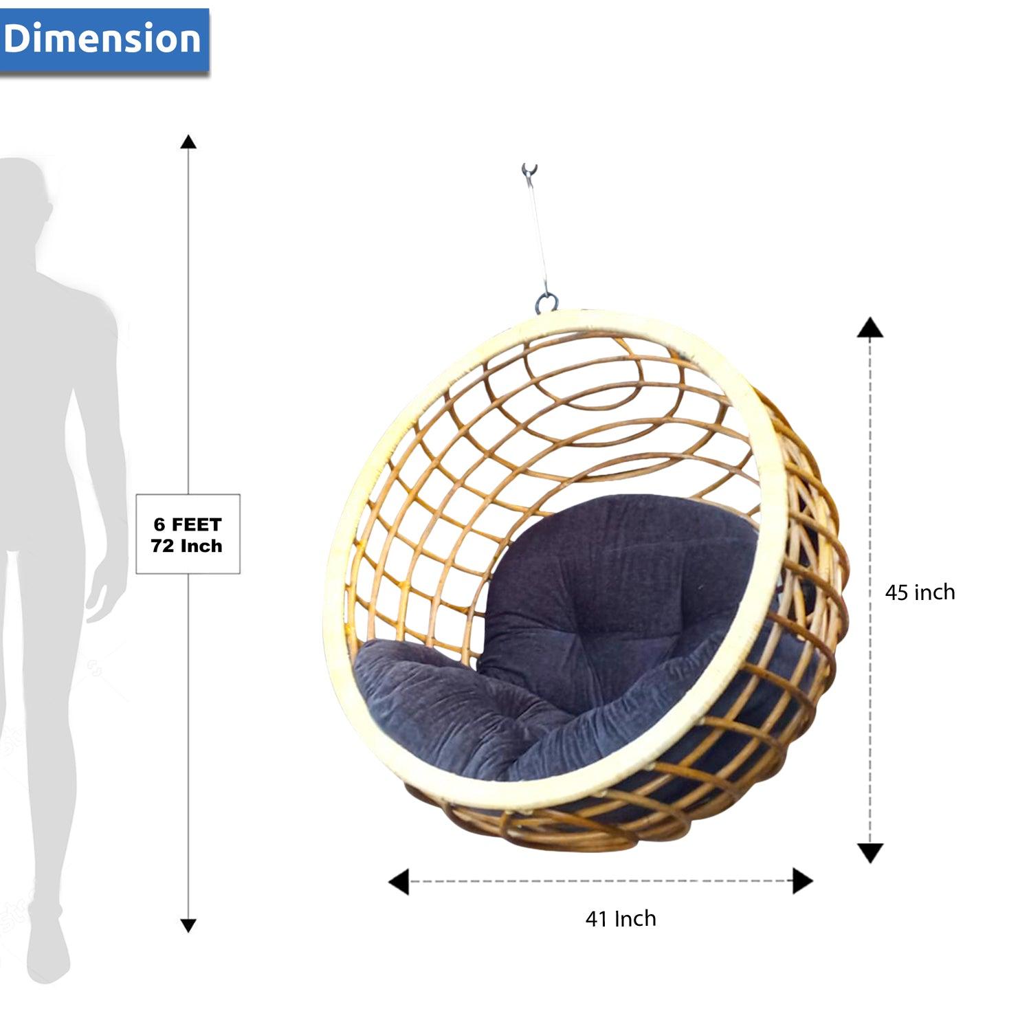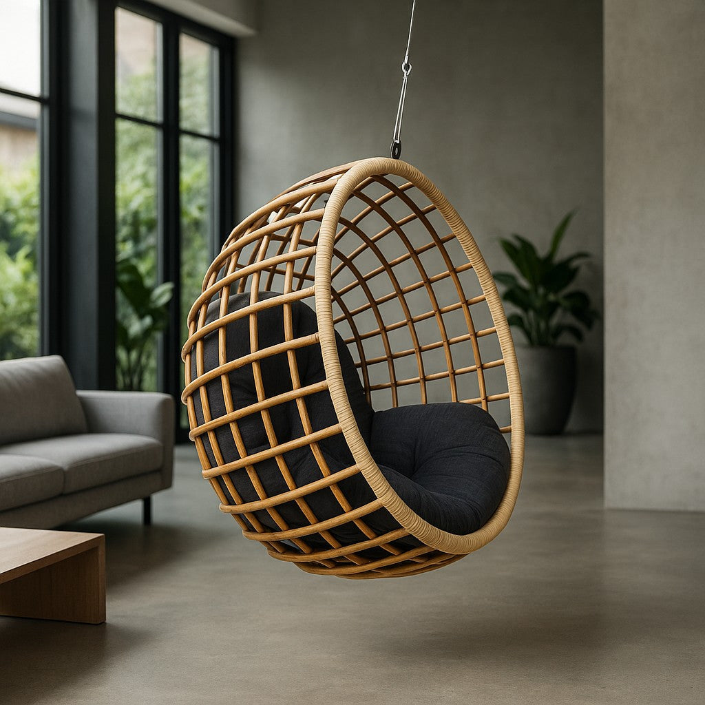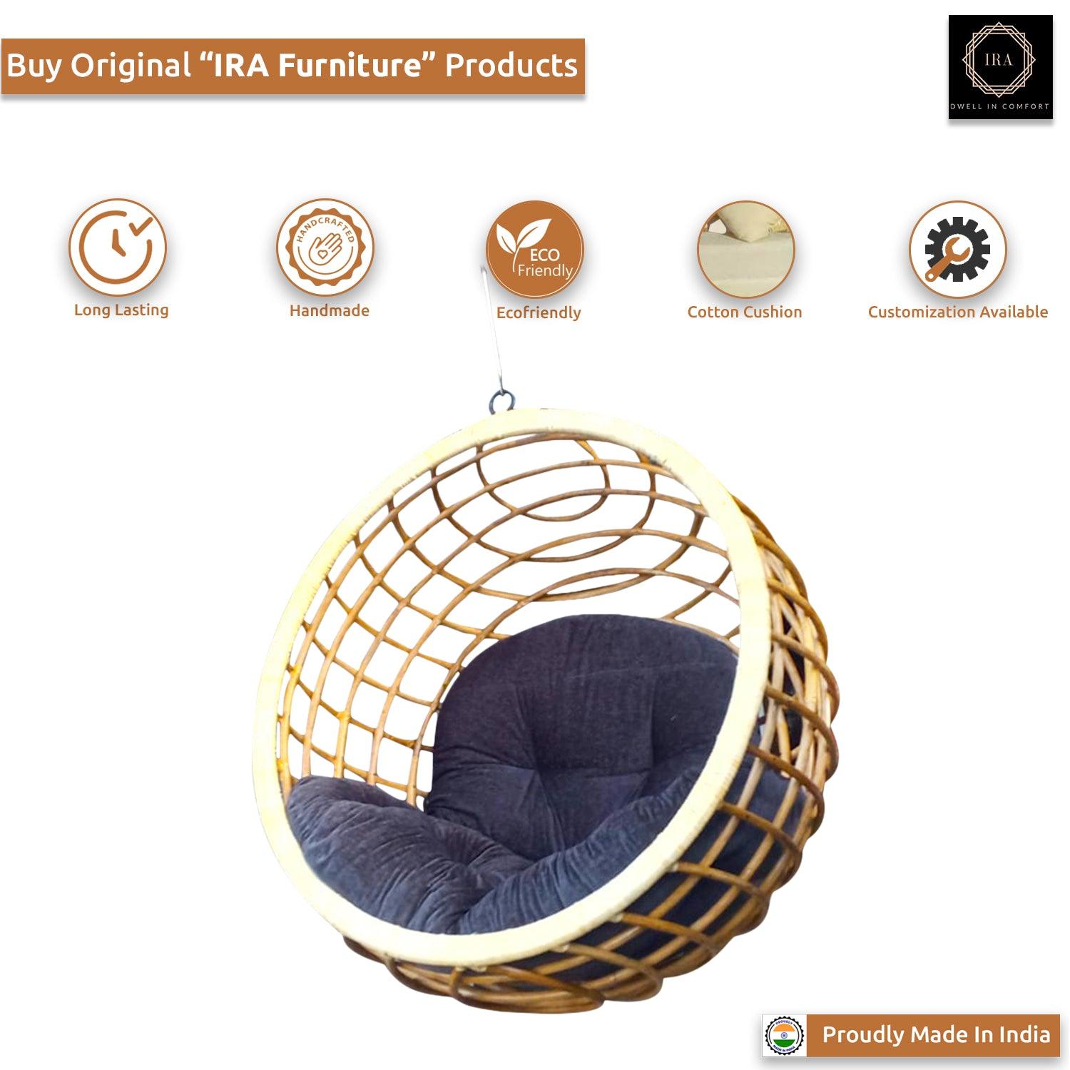 IRA Rattan Modern Round Swing Chair with Cushion | Hanging Egg Chair with Chain & Hooks for Balcony, Living Room, Garden & Patio