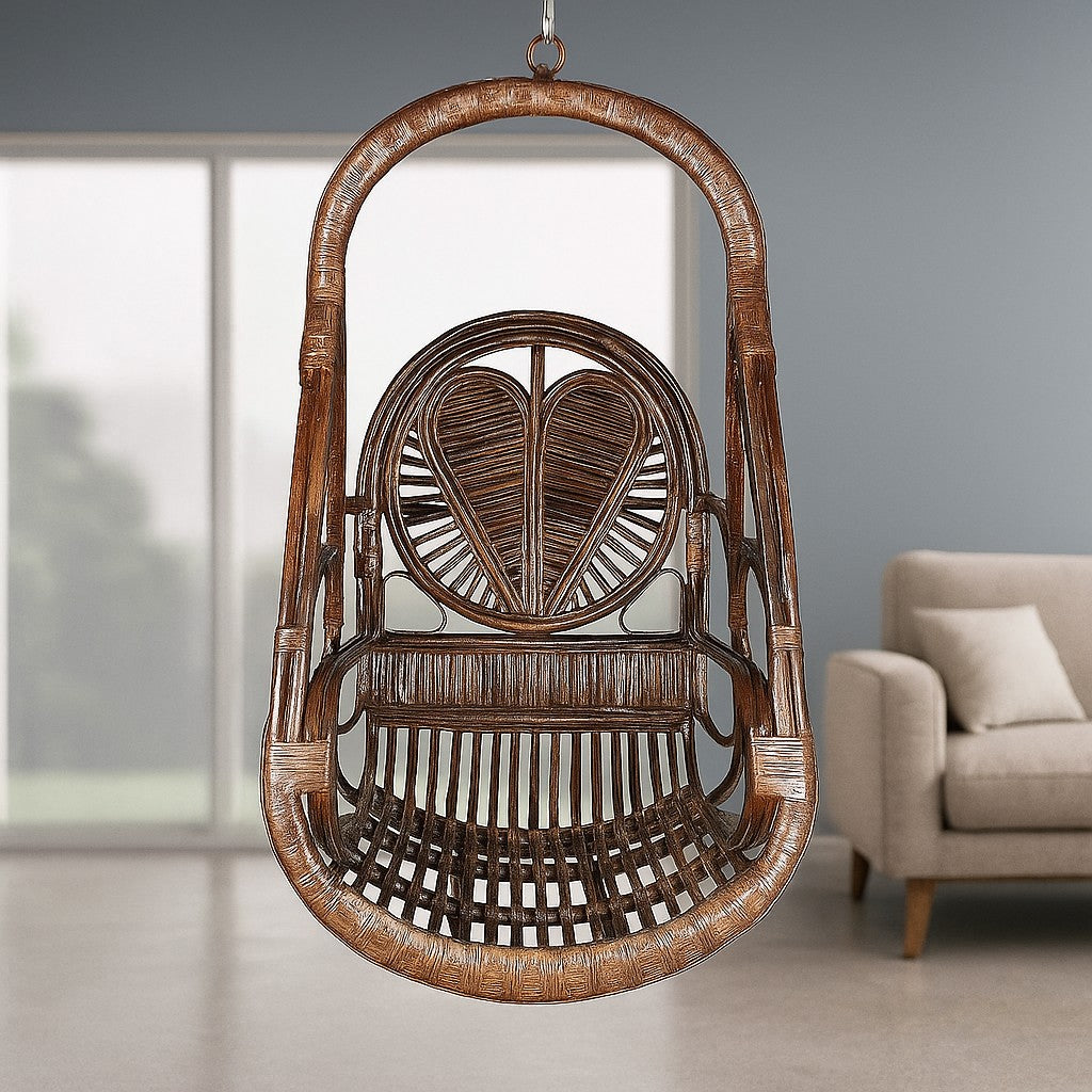 IRA Rattan Swing Chair with Patterned Heart – Perfect for Patio, Balcony, Indoor & Outdoor Relaxation